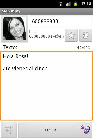 Como es natural el aspecto visual de SMS mJoy en Android es bastante diferente a su versión Windows pero el método de envío es el mismo, es decir, podremos enviar SMS (mensajes de texto) gratis sin tener que registrarnos en la web de mJoy y, por tanto, sin necesidad de recargar créditos para cada envío.