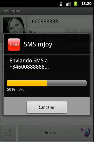 Como es natural el aspecto visual de SMS mJoy en Android es bastante diferente a su versión Windows pero el método de envío es el mismo, es decir, podremos enviar SMS (mensajes de texto) gratis sin tener que registrarnos en la web de mJoy y, por tanto, sin necesidad de recargar créditos para cada envío.